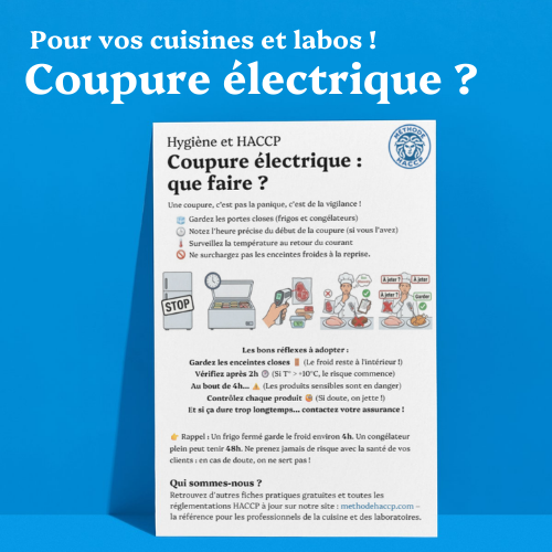 Un affiche qui indique clairement la démarche à faire en cas de coupure électrique pour préserver la chaîne du froid.